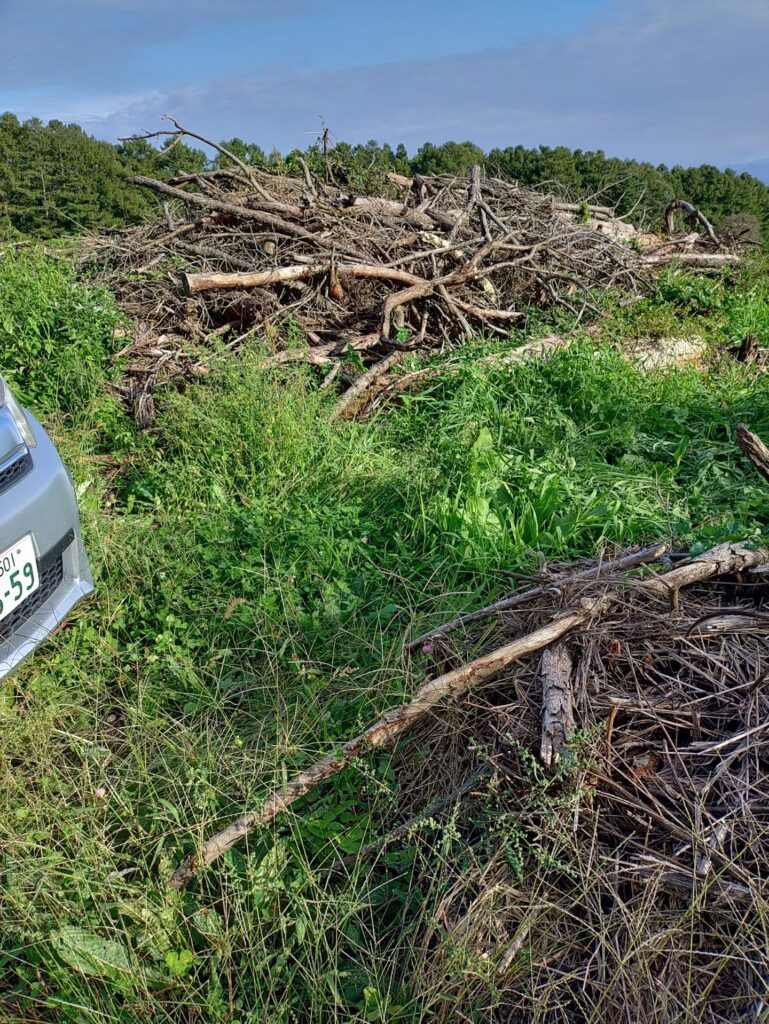 途方に暮れる量ですが、、これも刻んでもう少し乾かせばこの冬の薪にも使えるでしょう。そう思うと40センチ前後に刻んで運び出せば薪も得ながら土地がスッキリしていく一石二鳥だ、やる気がちょっとだけ 湧いてきています。