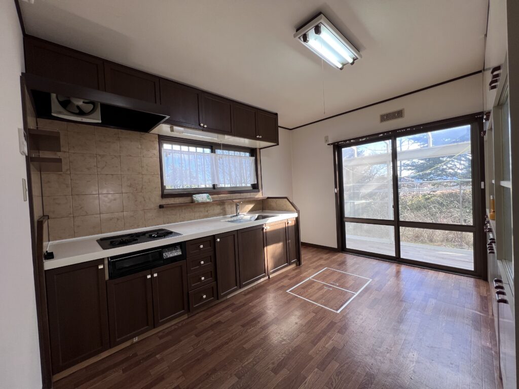 キッチンとLDKの間にはカウンター収納の仕切りがあり、キッチンの掃き出し窓のところにはサンルームもあります。自然豊かな軽井沢は花粉や昆虫達、突然の雨など、お洗濯物の「外干し」がなかなか安心してできず、かといって室内干しだと室内が湿気っぽくなってしまいます。そんな軽井沢でとても便利なのがサンルーム。こちらで安心してお洗濯物を干すことができます。