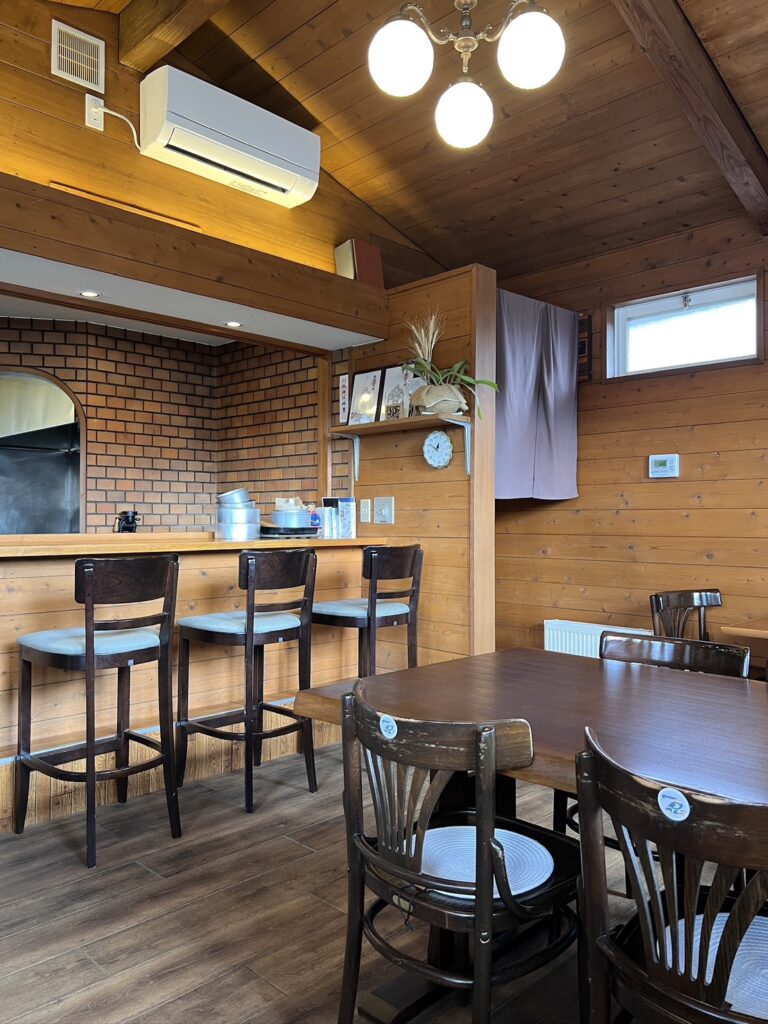 店内には、テーブル席が3つと、おひとり様も利用しやすいカウンター席。窓際にはパネルヒーターもあり、安心の暖かさです。(私にとって、冬の軽井沢の外食であたたかく安心してお食事できることはとても重要!)