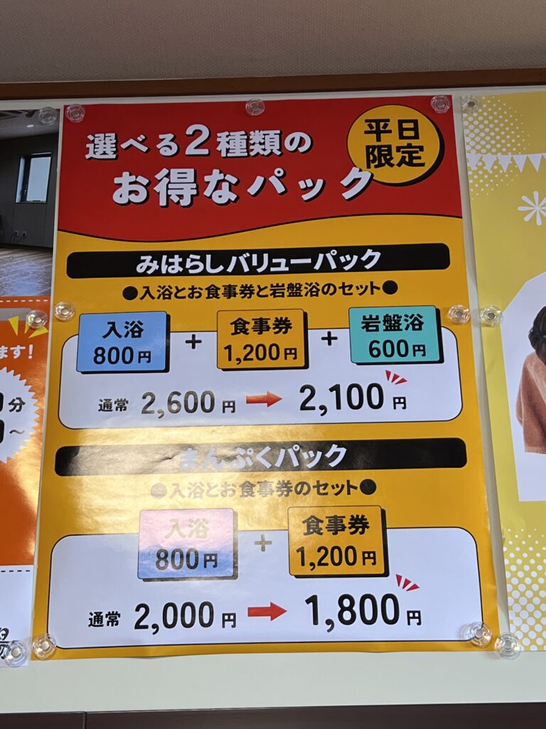 サイトにはあまり載っていないようなのですが、こんなお得な平日限定のパッケージもあります。
