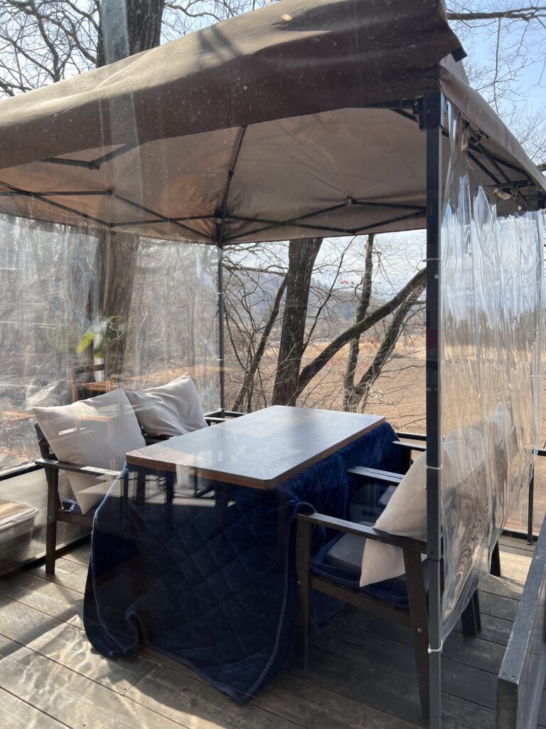 ワンちゃんOKのテラス席は、ドームテントの席や、