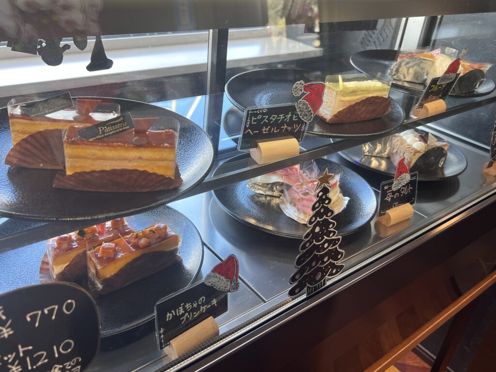 ケーキが入口近くのショーケースに並んでいたので、食後にショーケースを見て選びました。
