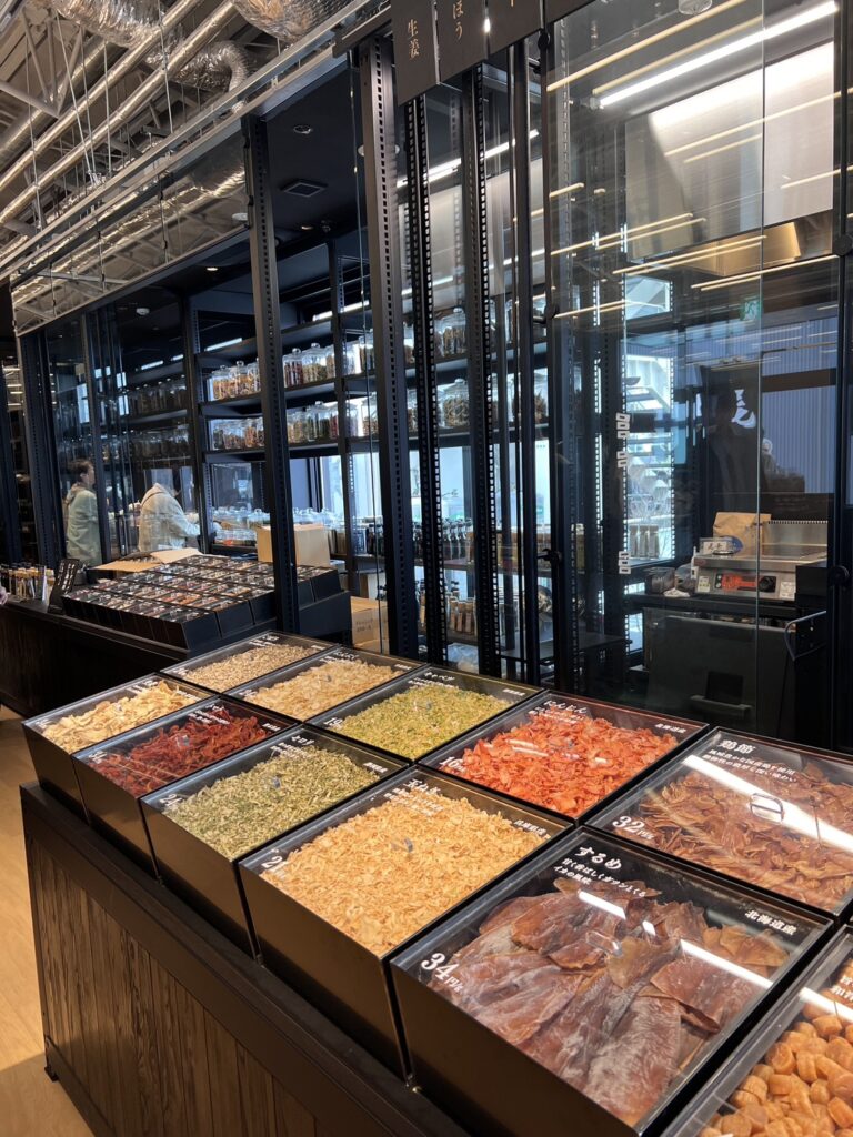 また、だし「尾粂」さんから漂ってくるおだしの良い香りには、ついついつられて入店…。あつあつのおだしの試飲、とても美味しかったです。自分だけのオーダーメイドだしパックが作れるコーナーや、店舗中央には無添加食品や調味料の物販コーナー、奥にはレストランもありました。