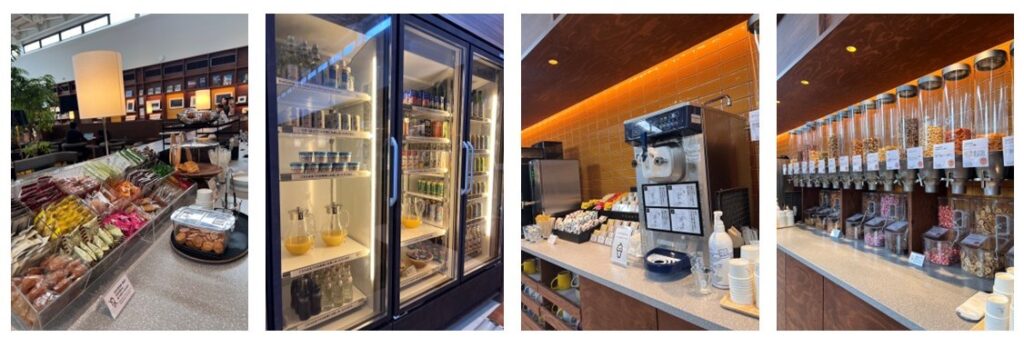 無料で利用できるソフトドリンク、スープ、フードが充実!