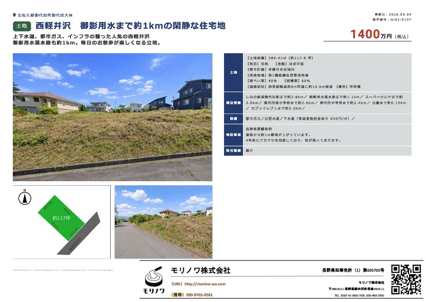 1. 御影用水まで約1㎞の117坪土地