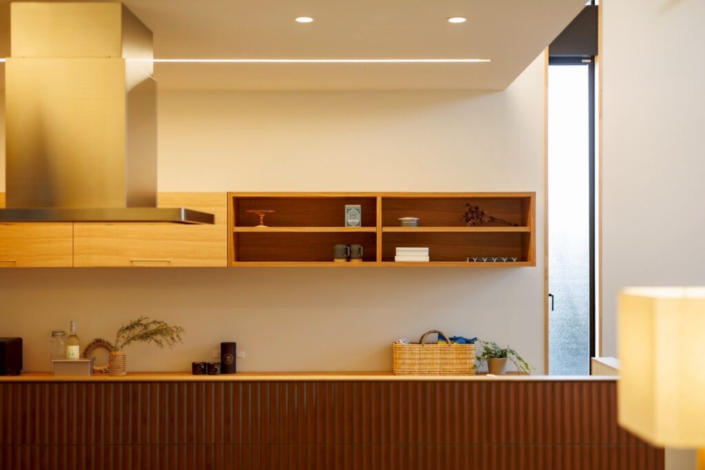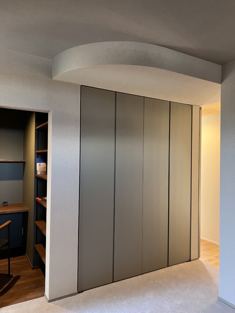 240cmの天井高を確保しつつ、建具のところは天井高を220cmに下げて建具のコストを抑える工夫、そしてそこに取り入れられた曲線の優しさ